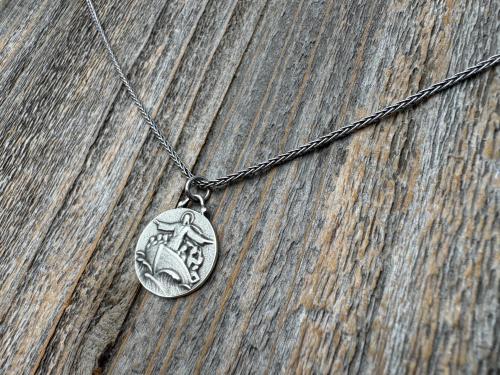 Antiqued Sterling Silver Jesus Calms the Storm Pendant, Antique Replica of Rare Medallion, Hand Engraved "My Jesus Calm the Storm", Necklace