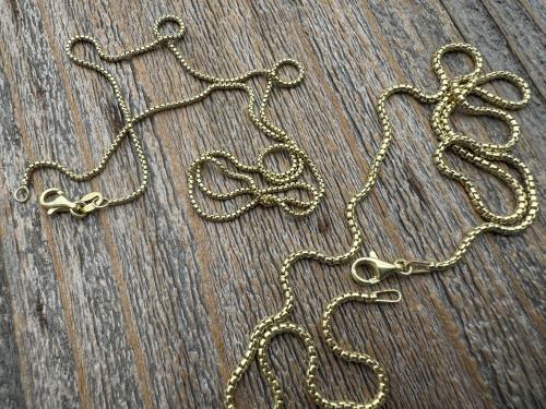 Gold Vermeil, 14k Gold over Solid Sterling Silver Box Chain Necklace Options, 1.1mm or 1.8mm Thickness, High Quality Gold Chain Necklace