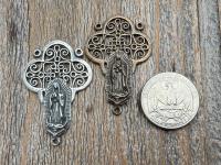 Large Our Lady of Guadalupe Rosary Center, Sterling Silver or Bronze, Antique Replica Big Rosary Centerpiece, Blessed Virgin Mary Parts
