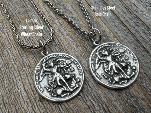 Large Sterling Silver St Michael Medal, Reverses to St Christopher, Antique Replica Medallion, Antiqued Saint Michael the Archangel Pendant