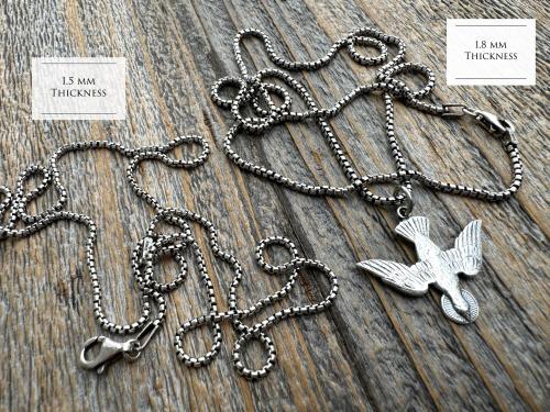 Absolutely gorgeous sterling silver, identical replica, of a French antique descending dove pendant. This Holy Spirit Dove pendant is available individually (on a ring), dangling on a 1.5 mm thickness oxidized sterling silver box chain, or dangling on a 1.8 mm thickness oxidized sterling silver box chain. The oxidation finishing process brings out the wonderful details on this artisan piece. I am blessed to have this rare original from France in my collection and be able to share this replica with you.